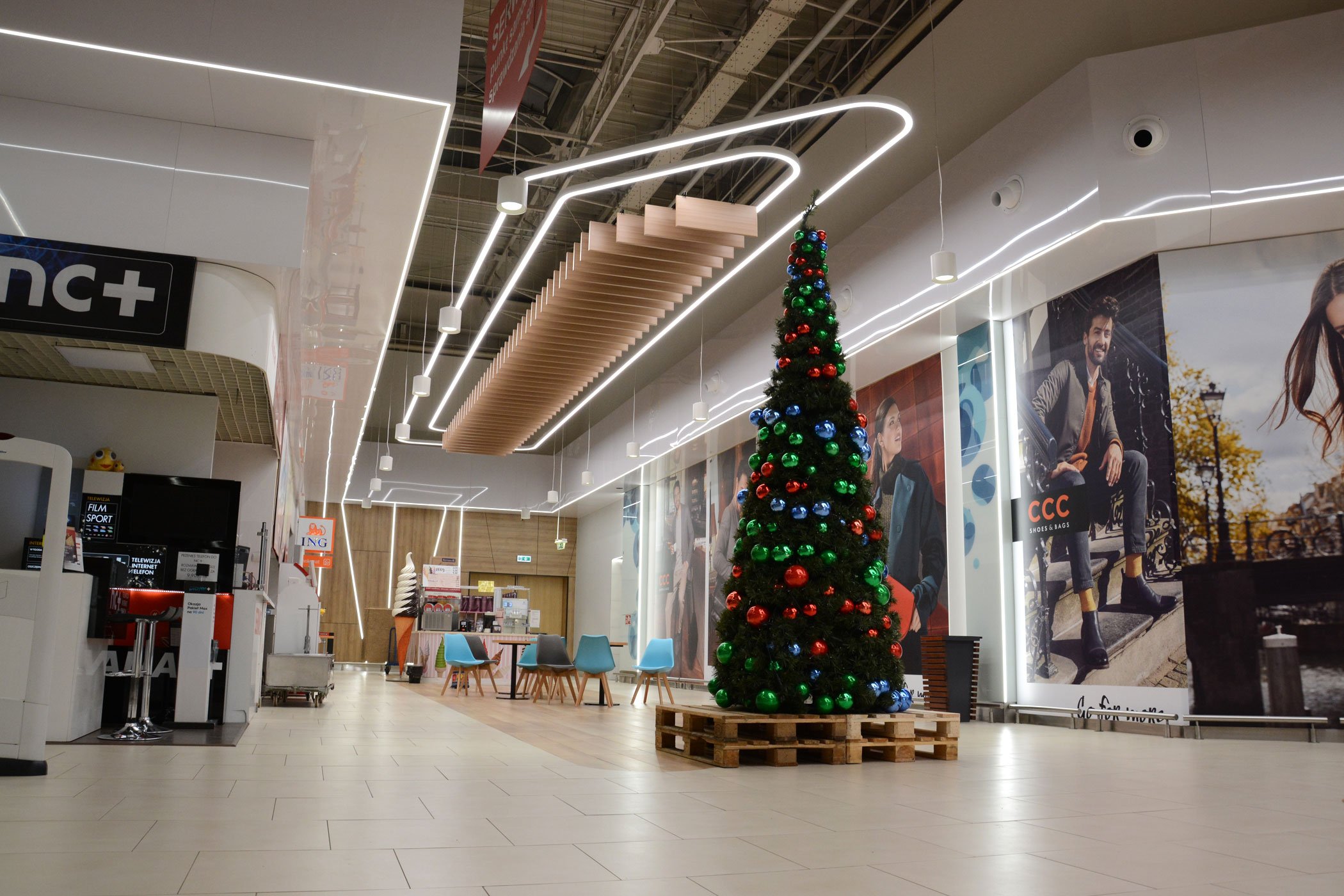 Jednym z najbardziej wymagających elementów instalacji była oprawa o długości 16 metrów. Jej wykonanie i montaż wymagały precyzyjnego planowania, zaawansowanych rozwiązań technicznych oraz doświadczenia zespołu montażowego. Pomimo trudności, osiągnięty efekt świetlny okazał się spektakularny – równomierne, miękkie światło podkreślające przestrzeń handlową i zapewniające komfort dla klientów.