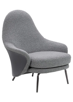 Fotel LOUNGE HM SOFT PREMIUM SZEROKI z podnóżkiem czarny - sklejka orzech, skóra naturalna