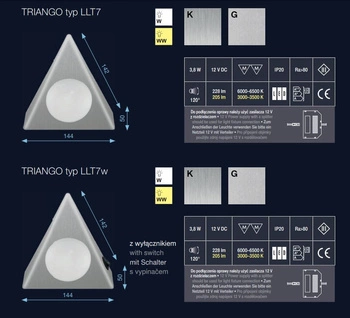 Oprawa Meblowa TRIANGO typ LLT 2 LLT7 Z wyłącznikiem Skoff9295 Skoff