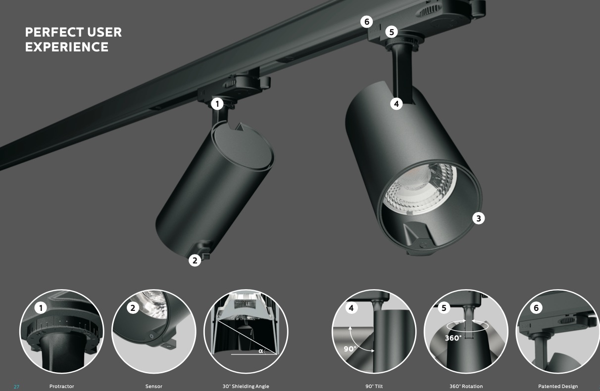 Wbudowany system AI automatycznie dostosowuje parametry światła do charakteru otoczenia oraz rodzaju eksponowanych obiektów. Funkcja Auto-Dim pozwala dodatkowo ograniczyć zużycie energii poprzez inteligentne przyciemnianie oświetlenia przy braku ruchu lub aktywności w przestrzeni.